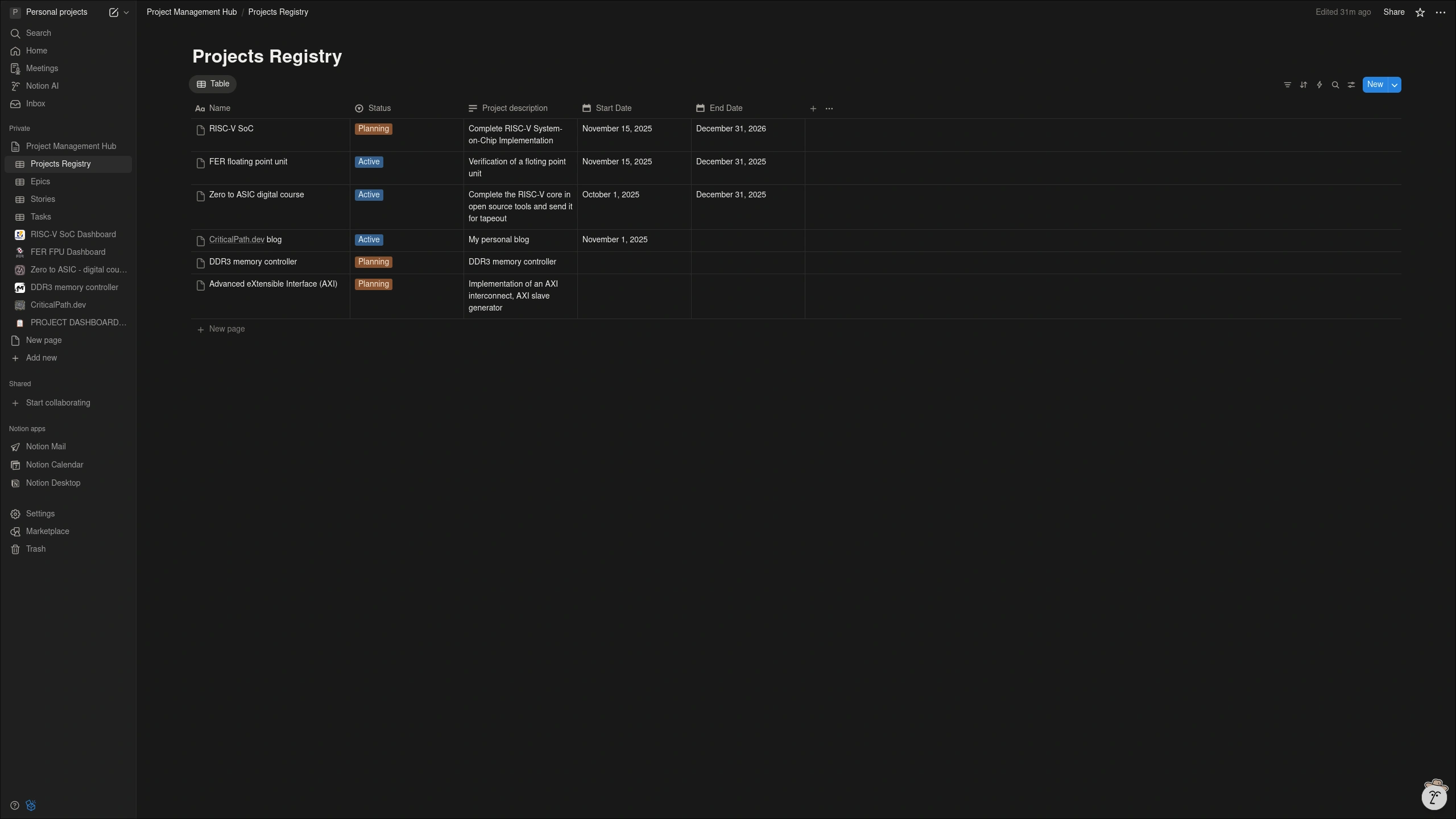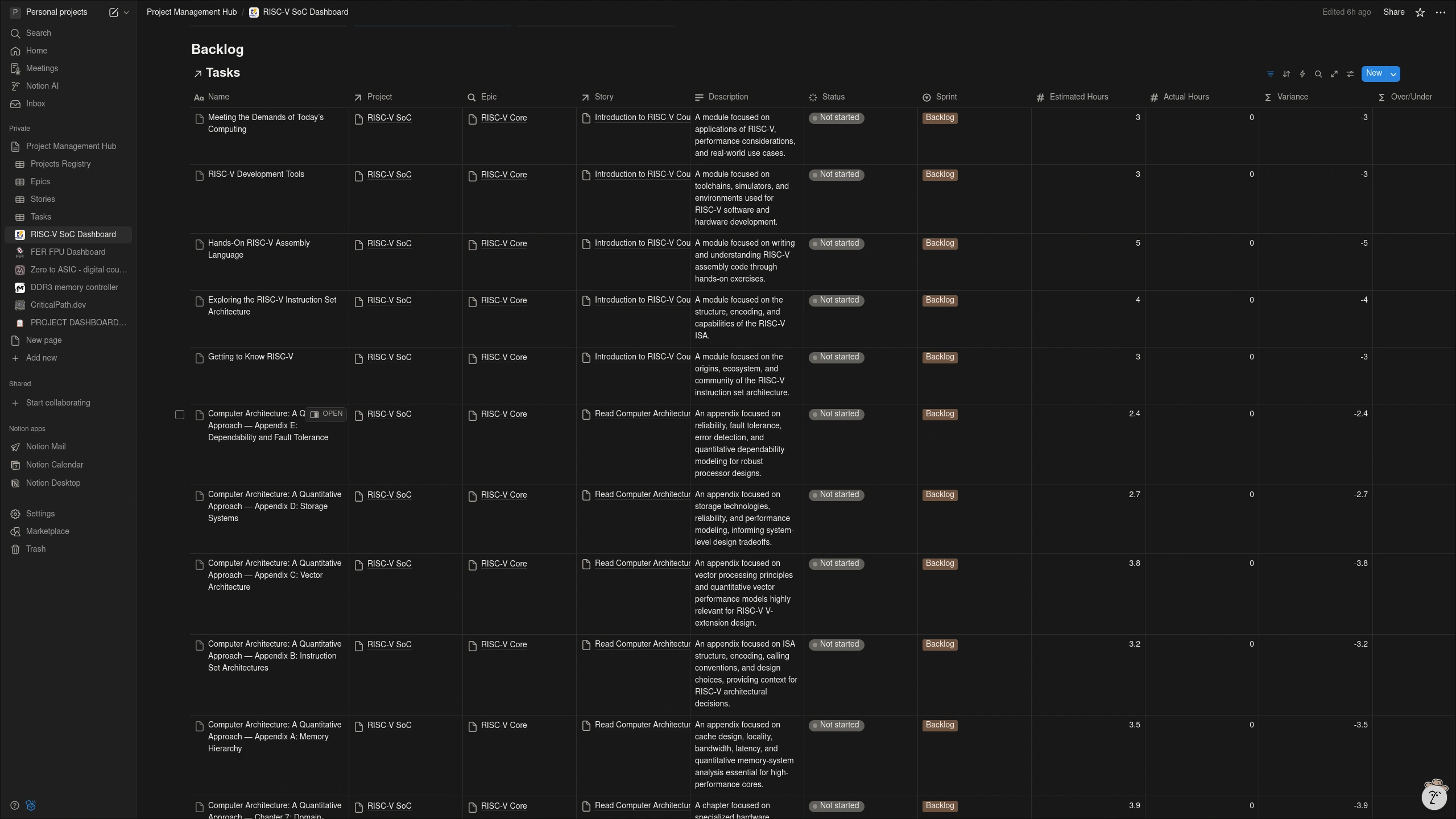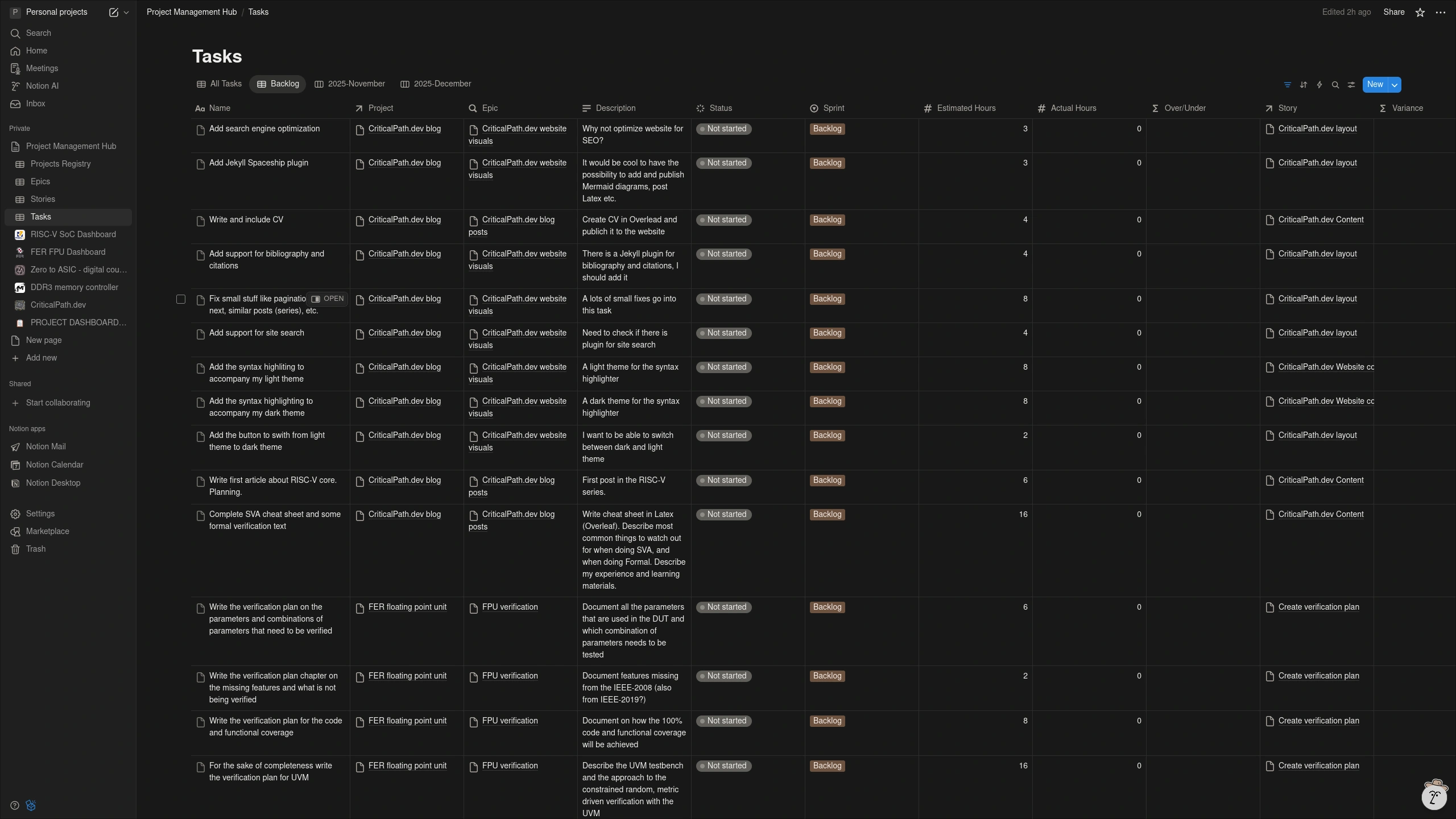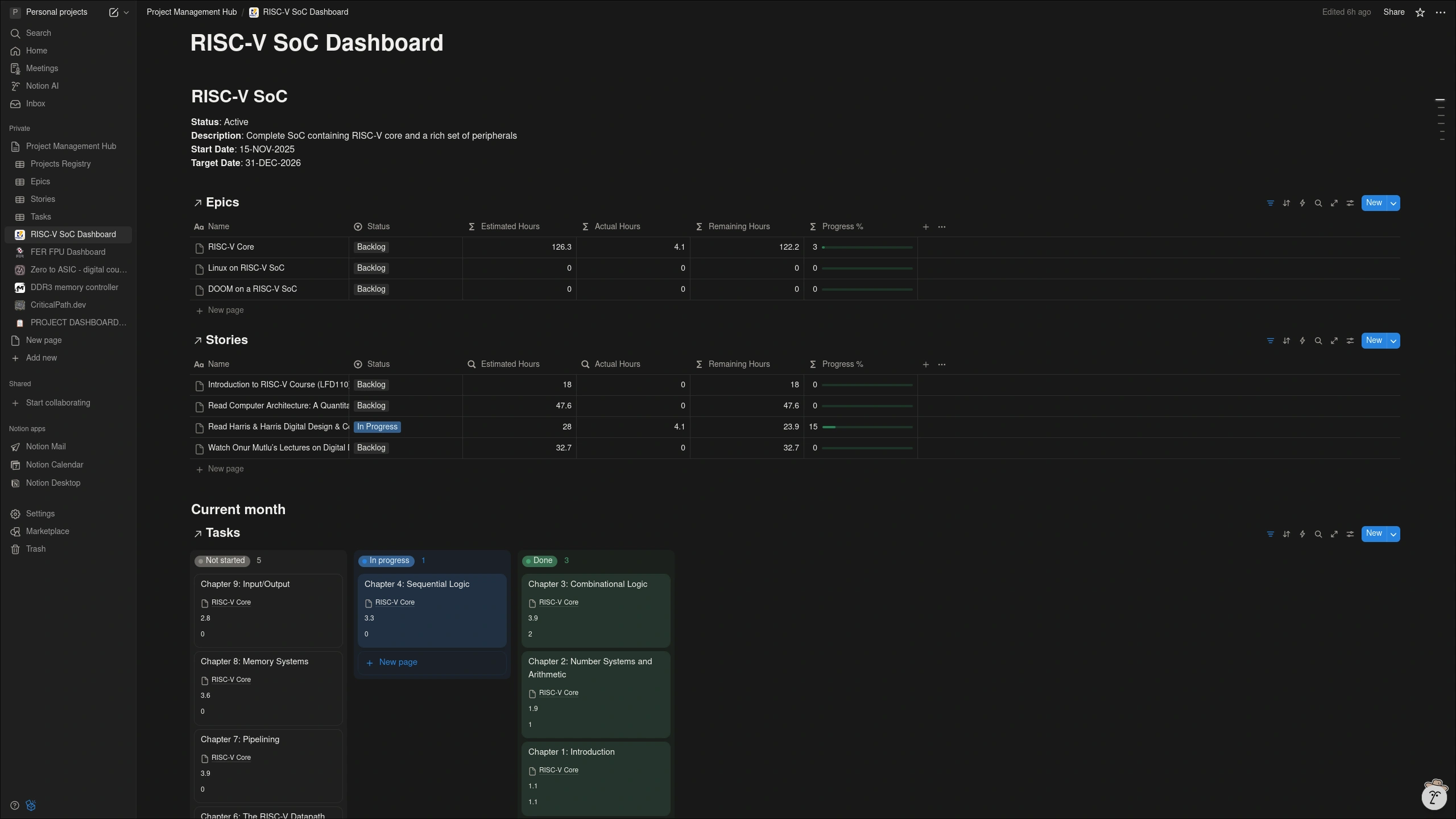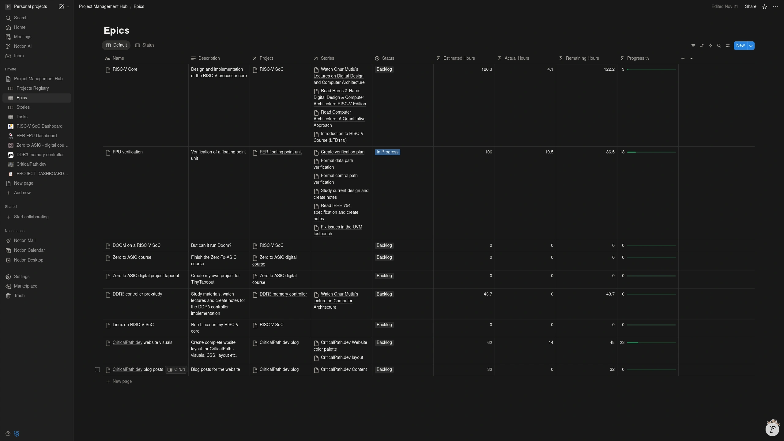 As I’ve mentioned before, each project gets a dedicated Project dashboard page. This page essentially contains a link to the Epics, Stories and Tasks databases, but it’s set up in such a way to provide a clear overview of the Project.